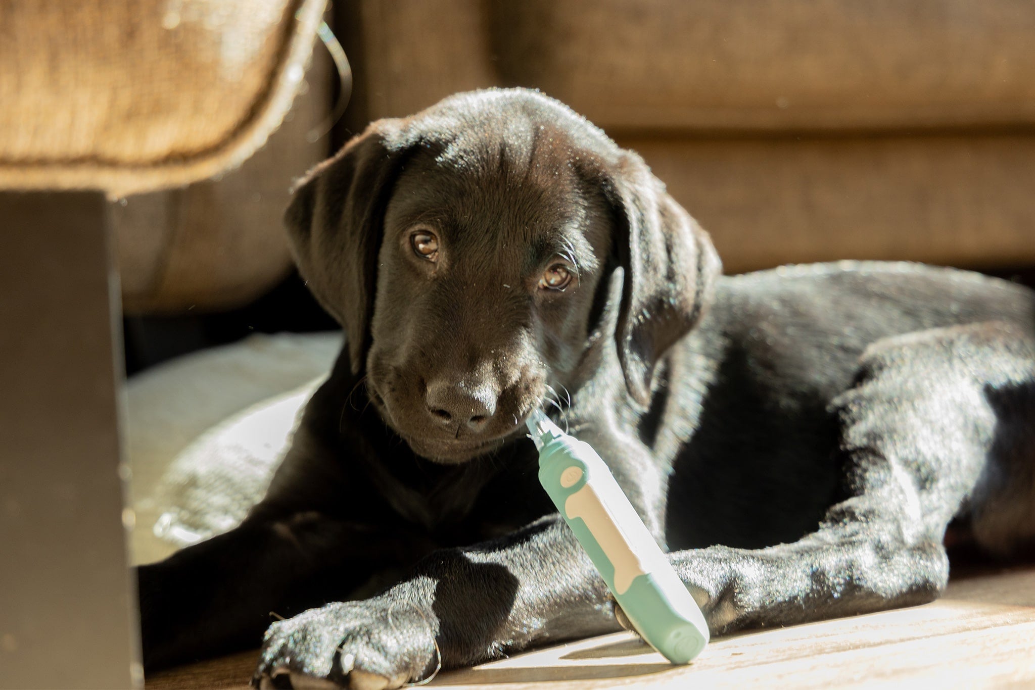 The revolutionary toothbrush for dogs, powered by safe and effective electrolytic technology. No toothpaste needed. No sounds or vibrations.