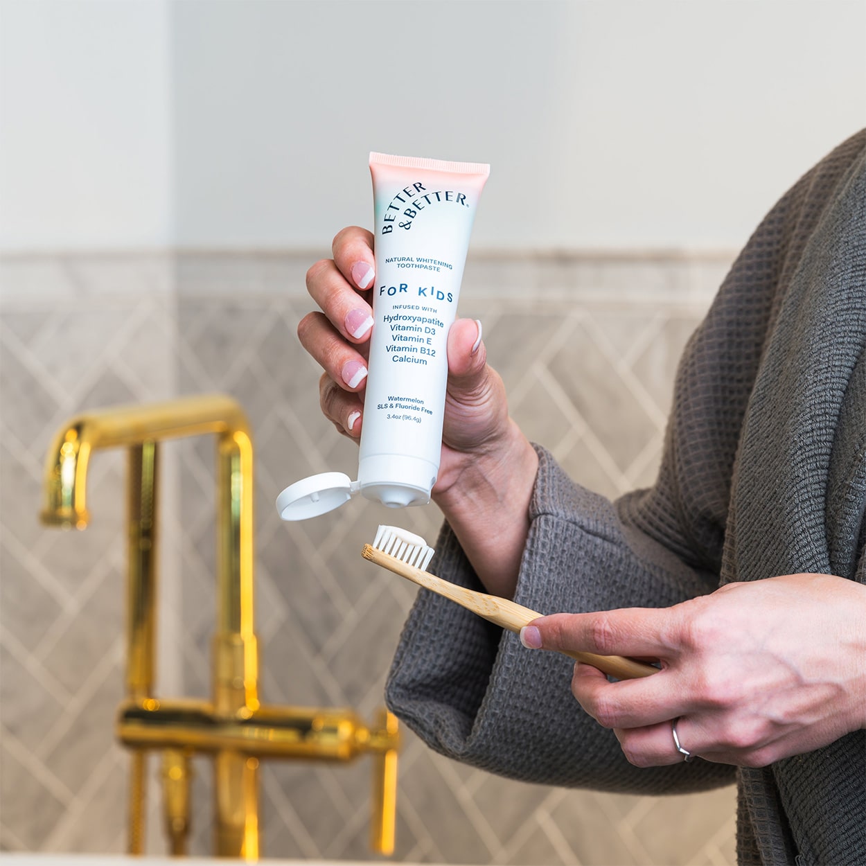 A fluoride-free toothpaste that does more than just clean—this Kids Toothpaste is packed with essential nutrients to support growing teeth, healthy gums, and whole-body wellness. Plus, the natural watermelon flavor makes brushing something to actually look forward to.